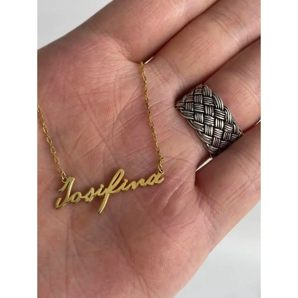 Etiketler | Josifina Yazılı 925 Ayar Sarı Gümüş Kolye 2,20 Gram |