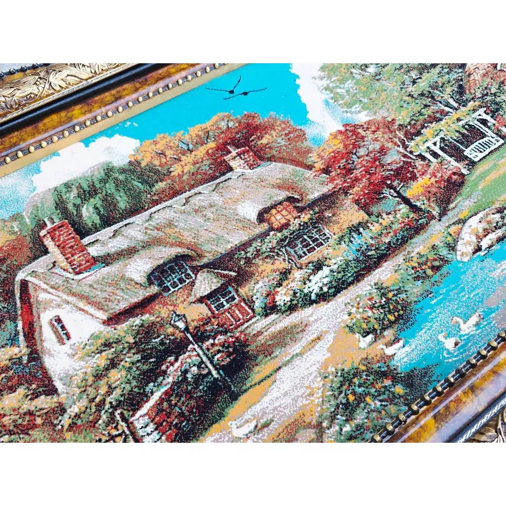 | Etiketler | Kuğulu Göl Kulübesi Adlı İran Tebriz Halı Tablo 123x73cm - Duvar Halı Kilim Tablo |